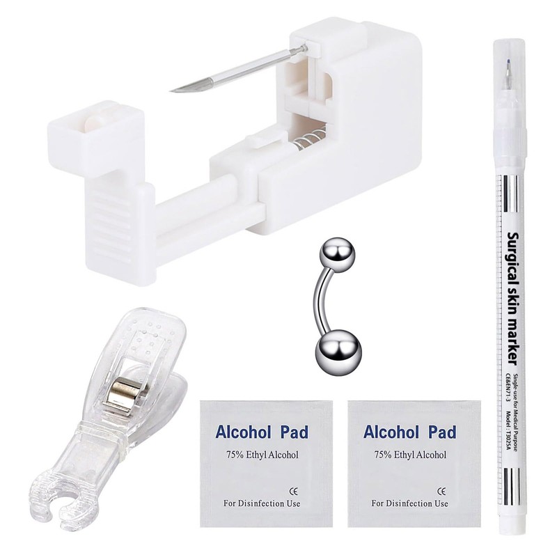 - Package Contents: You will receive 1pc 14g piercing gun, 1pc stainless steel navel ring (14g), 2pcs cleaning pads, an aiming clip, a marker pen.
