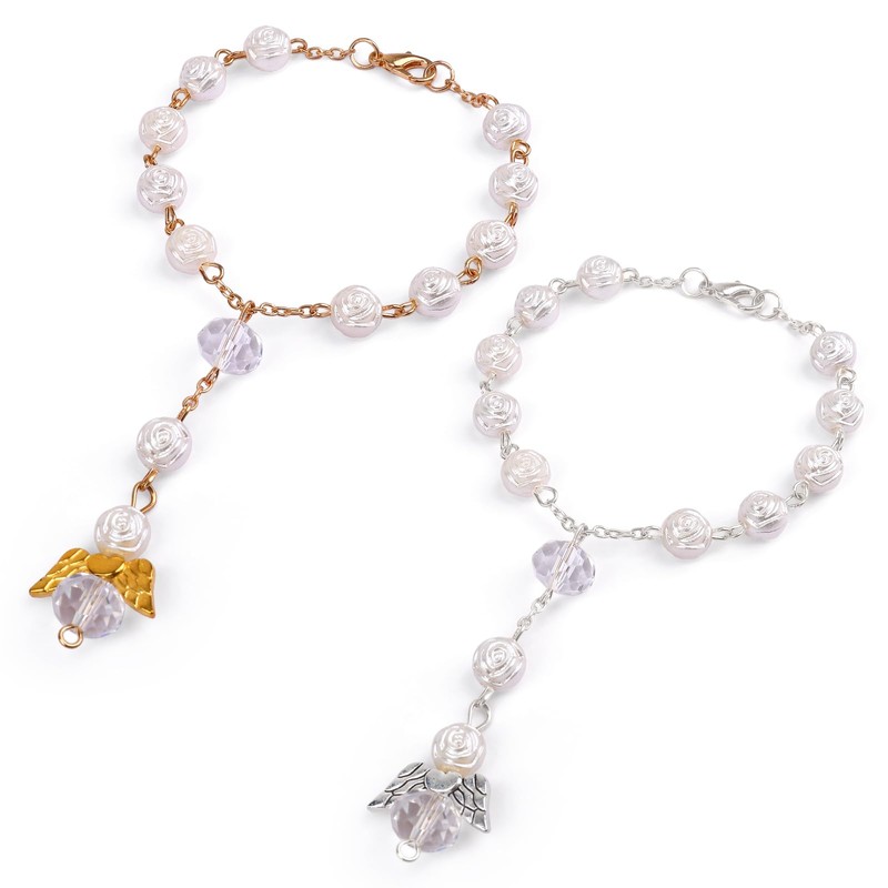 QMLING 2 Stück Schutzengel Auto Deko, Rosenkranz Auto, Rückspiegel Anhänger, Autospiegel Anhänger Glücksbringer, Schutzengel Geschenk (Weiß und Gold)