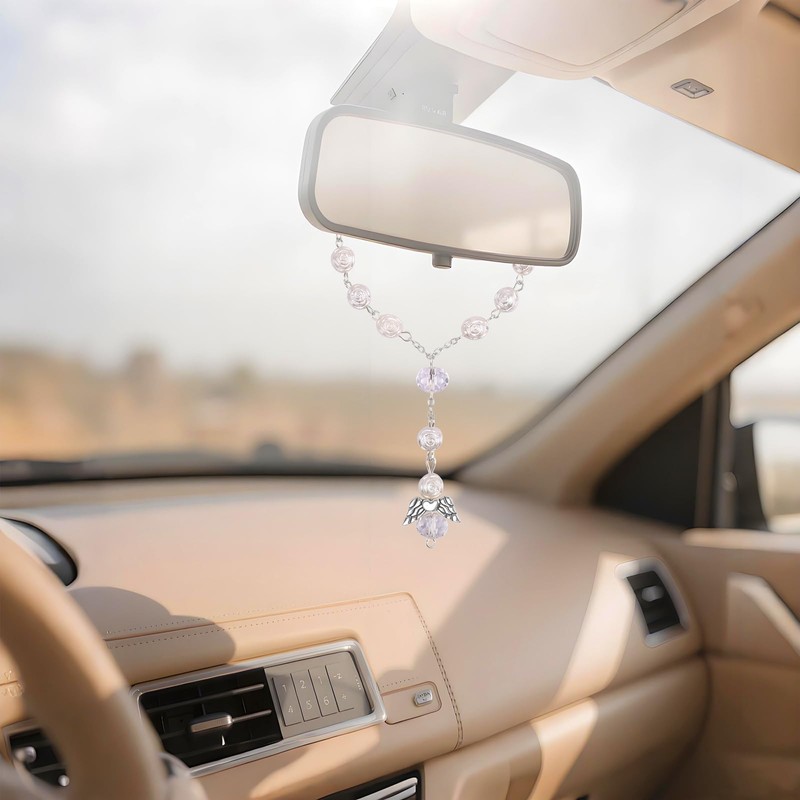QMLING 2 Stück Schutzengel Auto Deko, Rosenkranz Auto, Rückspiegel Anhänger, ...