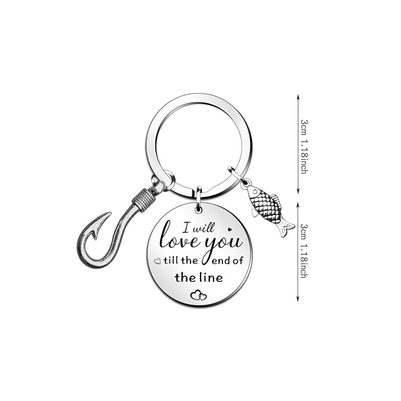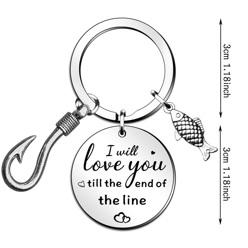 QMVMV Couple Keyring Gifts for Husband Boyfriend Fisherman Gifts I'll Love You Till The End of The Line Keychain Fishing Lures Keyring Valentines Christmas Anniversary Wedding Gift for Him and Her
