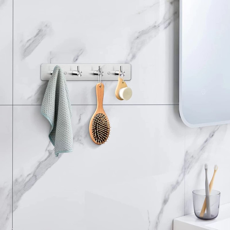 QNIIAED Coat Hooks Wall Mounted,Multipurpose Modern Stainless Steel Screw in Door Hook Metal Heavy Duty Coat Rack Row of Hook Hanger Towel Robe Clothes Hat Hook for Bathroom Bedrooms(Silver 4 Hooks