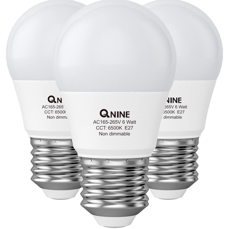 QNINE ๐๐๐ Screw Bulb, Cool White, ๐๐๐๐๐, 540lm, ๐๐ (๐๐๐ Equivalent), LED Golf Balls, Non-Dimmable, 3-Pack