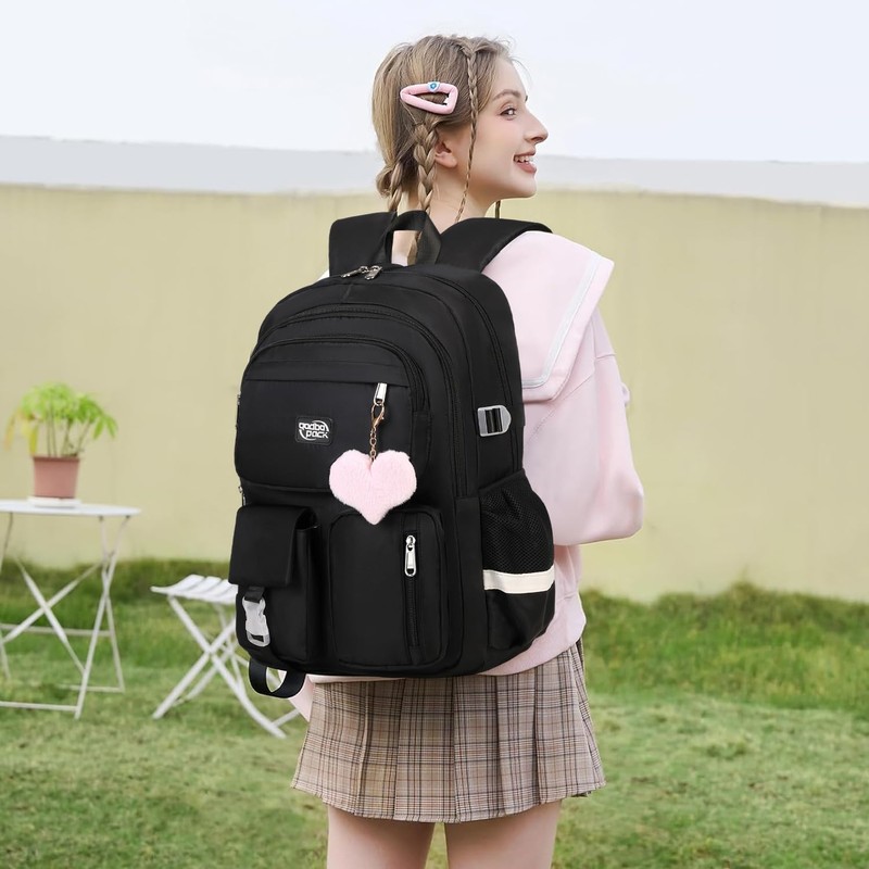 qodbopack Backpack For School Women College Middle High Teen Girls Student Bookbag Waterproof Laptop Bag Black