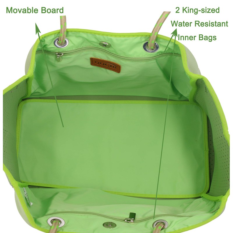 QOGiR Neoprene Multipurpose Beach Bag Tote with Inner Zipper Pocket (Green, Large)