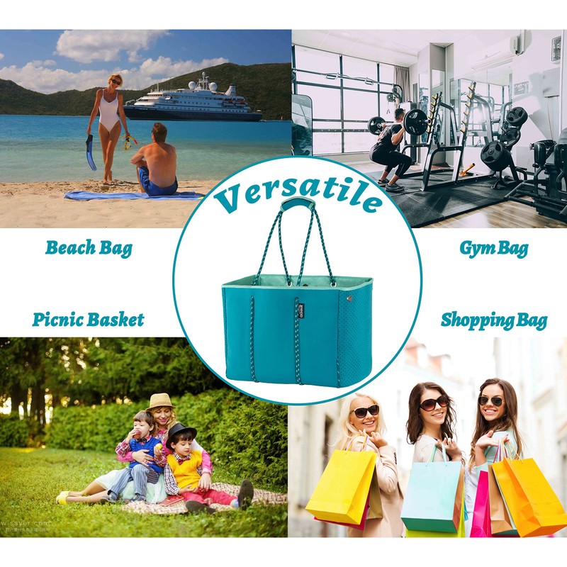 - FASHIONABLE AND ELEGANT: Using the high-quality neoprene and polyester material, unique classic design style, these beach bags look particularly stylish and elegant. The same bag can be changed three styles, you have three options only pay a bag. Please look at the picture and make your choice.