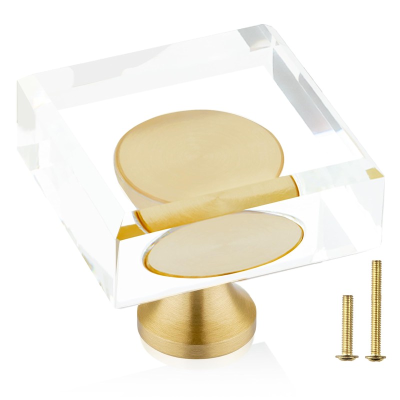 QOGRISUN 10-Pack Brass Crystal Cabinet Knobs,Glass Crystal Gold Drawer Knobs,1-1/8-Inch Square,Decorative Dresser Pulls, Modern Cabinet Hardware