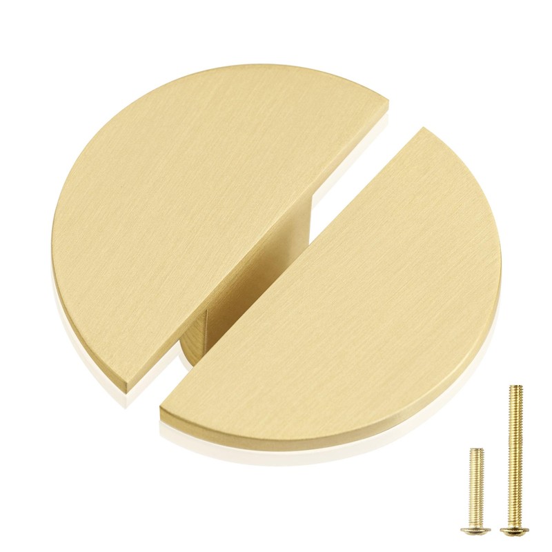 QOGRISUN 5-Pack Solid Brass Cabinet Pulls, Gold Half Moon Drawer Dresser Handles, 1-7/8-Inch Overall Length, Single Hole Pulls Knobs, Kitchen Cupboard Hardware, Brushed Brass Finish