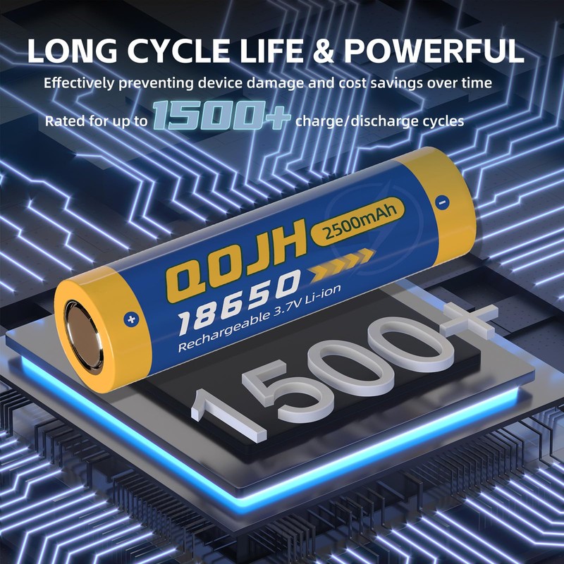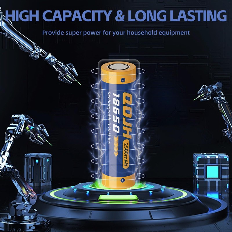 - High-Capacity Lithium Battery: These QOJH 18650 batteries boast a 2500mAh capacity and size of 18*18*65mm, providing long-lasting power for your household devices.