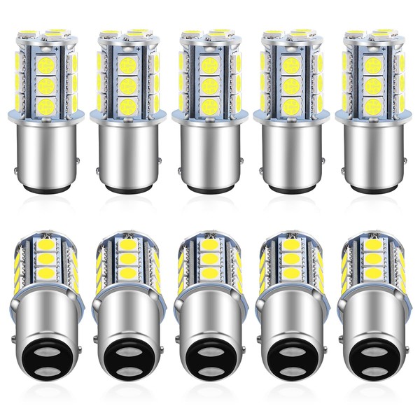 Qoope 1157 LED Bulb White 7528 2357 2057 BAY15D LED Bulbs Replacement for Brake/Tail Lights, Back Up Reverse Lights, Turn Signal Bulb, RV Camper Trailer 5th Wheel Boat Marine Light (Pack of 10)