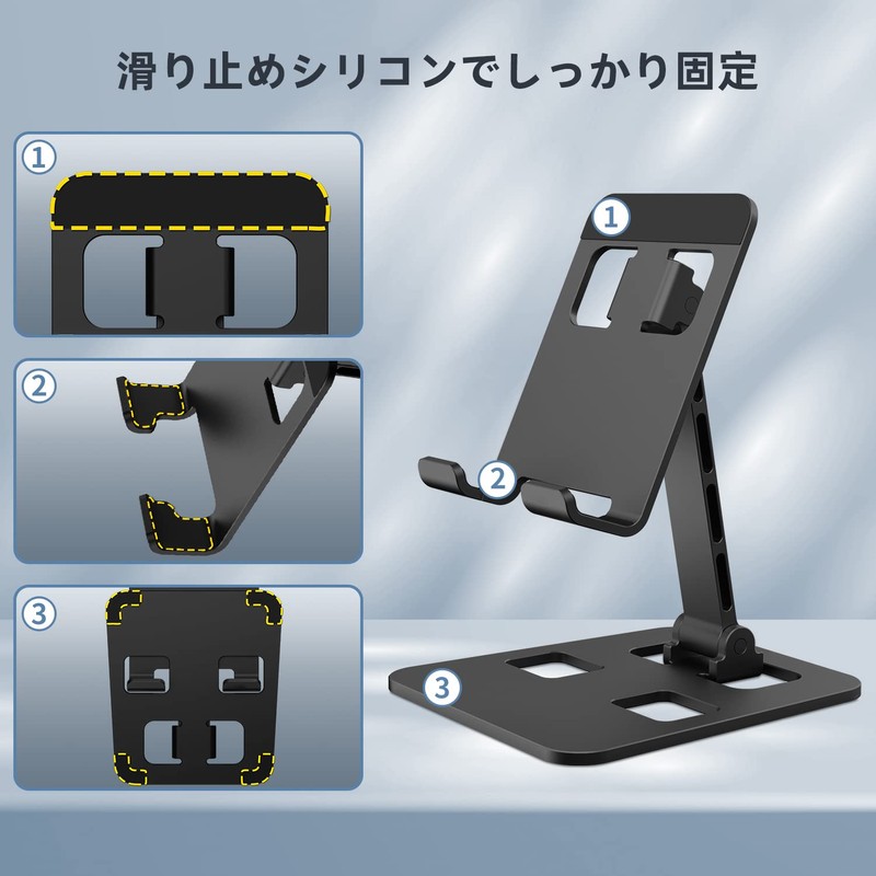 - Foldable for easy portability and charging while in use: The portable stand is made of lightweight and durable aluminum material, so it is compact and foldable when not in use, making it convenient to carry and save space. You can also charge your smartphone while it is in the kitchen, bedroom, office desk, dining table, etc