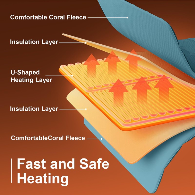 - 【Dual-Sided Heating】Unlike standard single-layer electric heating pads on the market, we’ve upgraded to upper and lower dual-layer heating. This technology is more advanced and safer, providing more sufficient warmth. Thanks to the evenly spaced heating wires, the foot heating pad warms up rapidly.