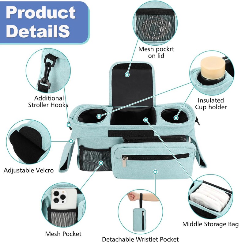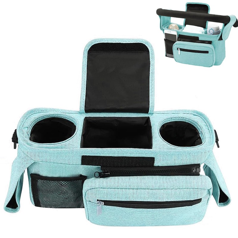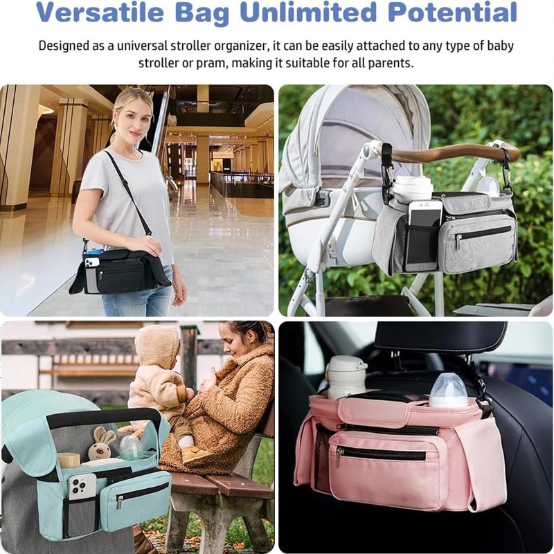 - 【Multiple Usage Methods】: The stroller organizer can be hung as a stroller cup holder organizer on the stroller.When you don't need to use a stroller, you can also install the accompanying strap and carry this organizer bag for easy outing.Strong and Durable The fabric is made of high-quality Oxford cloth, which is scratch-resistant and wear-resistant, easy to clean and has high load capacity,easy to install.