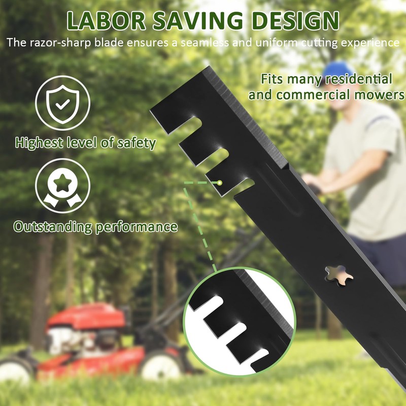 - QUALITY ALTERNATIVE: Our heavy-duty 16 3/4 inch lawn mower blades offer superior performance with better wear and impact resistance. Suitable for use on a wide range of residential and commercial mowers for a clean, flat cut every time.