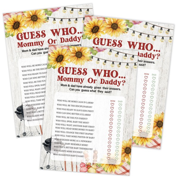 Qoqxjodd BBQ Guess Who Mommy or Daddy Game, Baby Shower Game, Pack of 30 Game Cards, Gender Neutral Boy or Girl, Fun Baby Game and Activity - FA23
