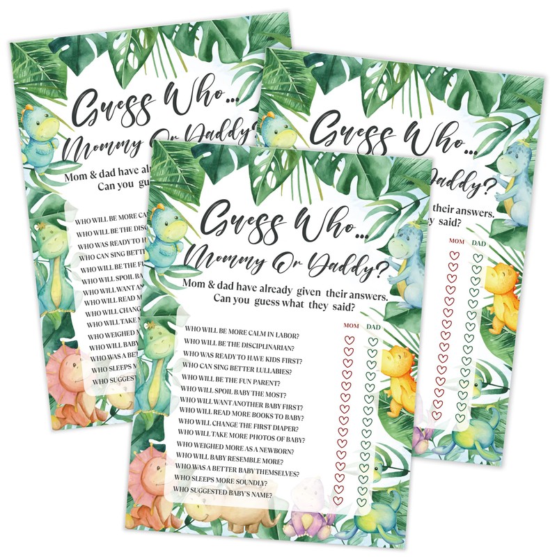 Qoqxjodd Dinosaur Guess Who Mommy or Daddy Game, Baby Shower Game, Pack of 30 Game Cards, Gender Neutral Boy or Girl, Fun Baby Game and Activity - FA41