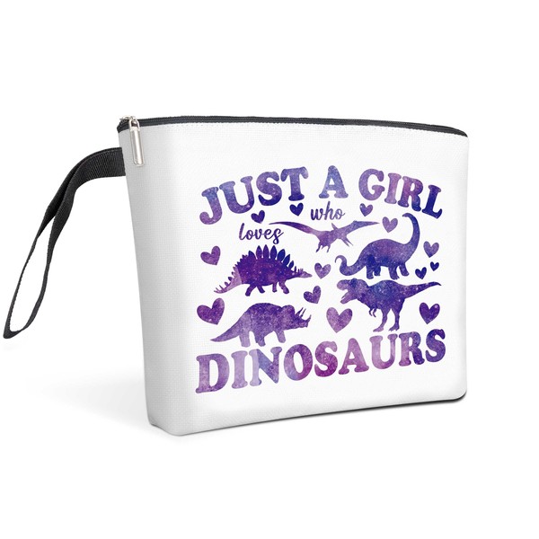 Qoqxjodd Dinosaur Lover Makeup Bag, Birthday Friendship Gifts for Daughter Sister Women, Just A Girl Who Loves Dinosaurs, Dinosaur Gift, Dinosaur Cosmetic Bag, Travel Makeup Bag Zipper Pouch - HZT24