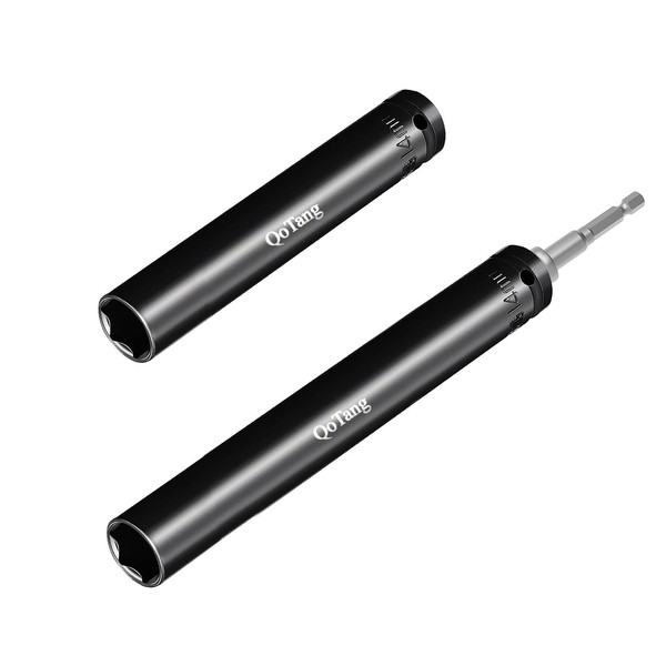 QoTang 2 PCS 9/16"(14mm) Power Nut Driver, Nut Runner Hollow Socket 7.9'' Length and 11.8'' Length, 1/2" Hex Shank, Long Bolt and Ductwork Power Nut Driver for Overhead Fastening Operations