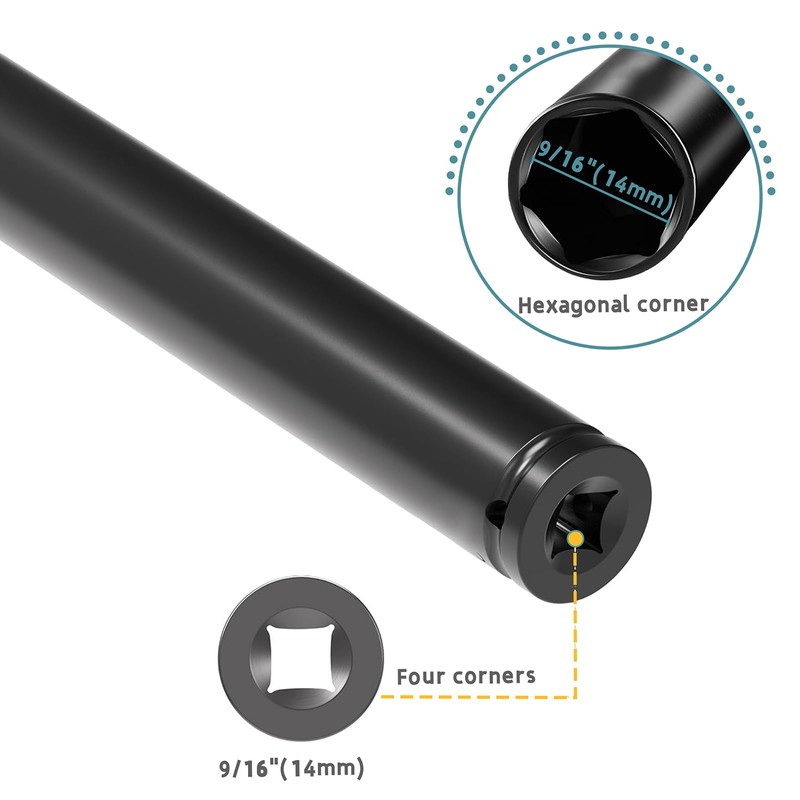 - Versatile Sizing and Length: With nut socket sizes of approximately 9/16" (14mm), our set accommodates hex nuts of corresponding sizes. The 7.9-inch and 11.8-inch sockets effortlessly handle bolts of different lengths, offering unparalleled versatility for your projects.