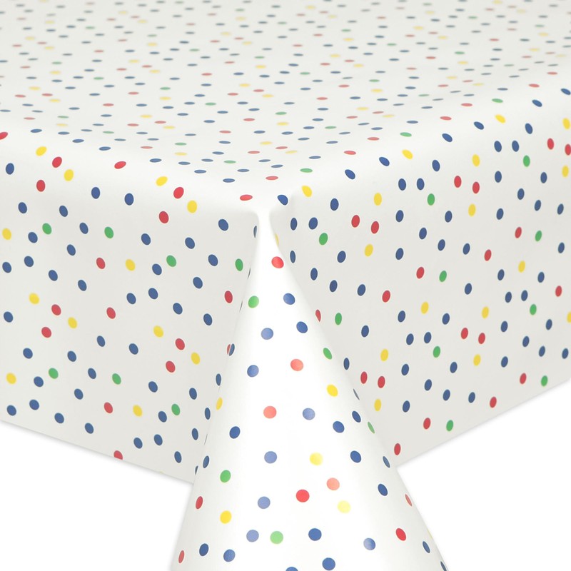 QPC Direct Rainbow Polka Dot PVC Oilcloth Table Cover Vinyl Tablecloth 140 x 200cm Rectangle