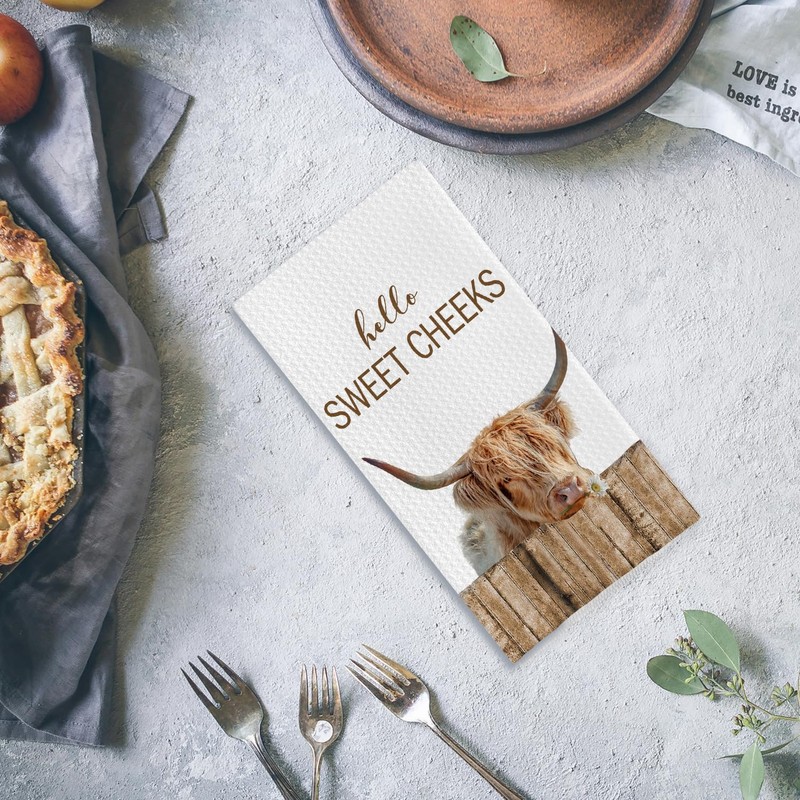 Qpenm Hello Sweet Cheeks Highland Cow Bathroom Hand Towels, Cow Bathroom Decor, Country Western Cow Hand Towels for Bathroom, Funny Bathroom Decor, 16x24 Inch