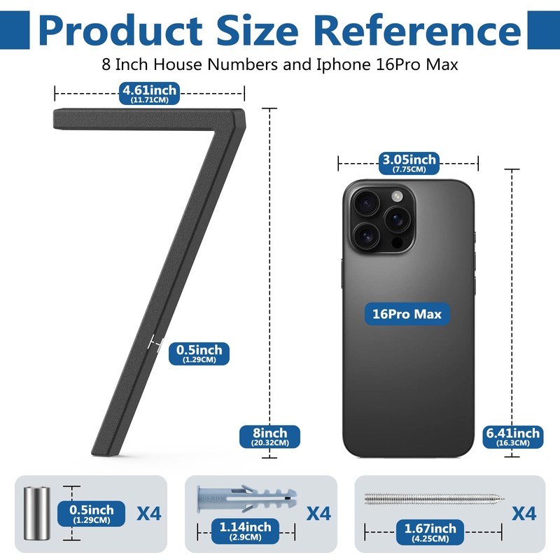 [Premium Zinc Alloy Material]Crafted from heavy-duty zinc alloy with matte black coating, these house numbers resist rust, corrosion, and fading. Perfect for all weather conditions–rain, snow, or intense sunlight.can support a long term usage.