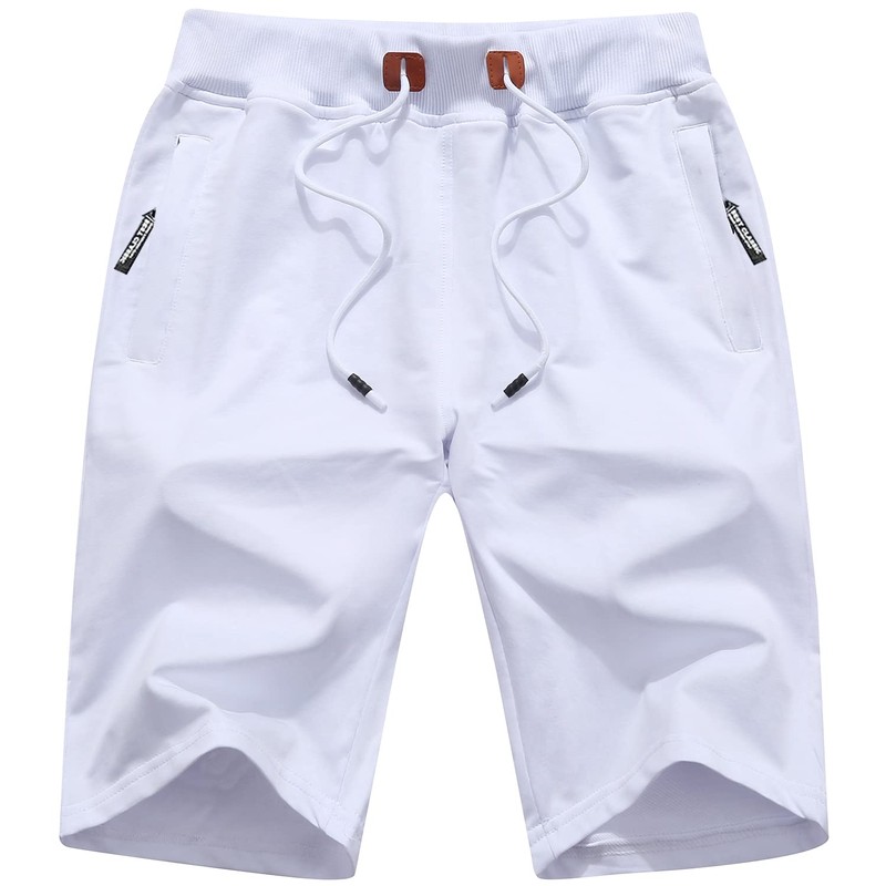 QPNGRP Mens Shorts Casual Drawstring Zipper Pockets Elastic Waist White 32