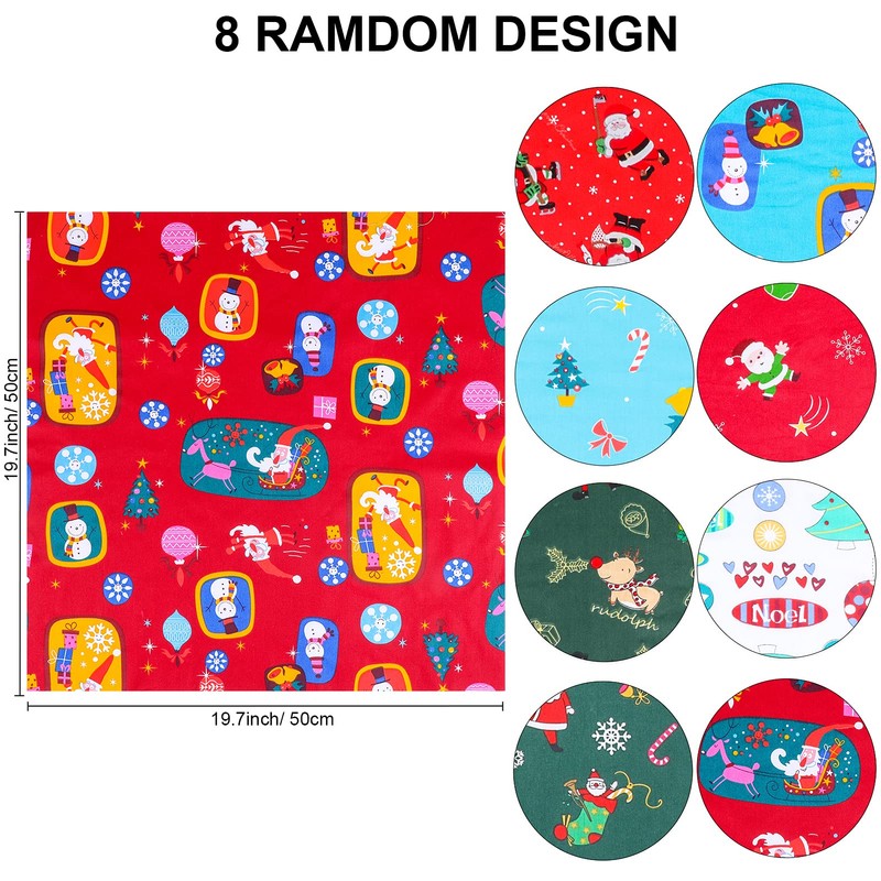 2. Style: Mix of 8 pieces of different designs fabric collection as picture shown, Santa Claus, Christmas tree, snowman, deer, bells, elk, canes, sleighs and other classic Christmas element patterns.