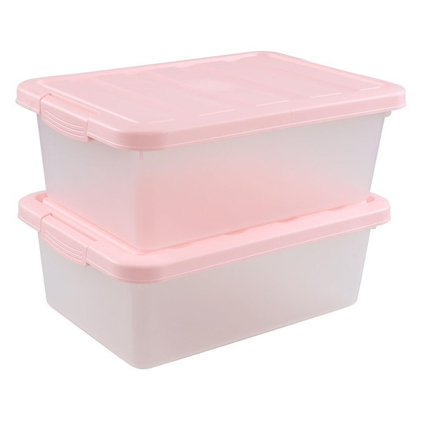 Qqbine 14 Quart Plastic Latching Storage Box, Plastic Underbed Storage Bin with Pink Lids, 2 Packs