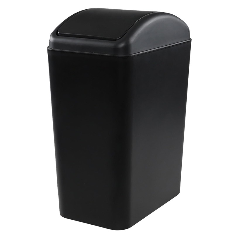 Qqbine 4.2 Gallon / 16 Liter Plastic Swing Lid Trash Can, Slim Trash Can with Lid, Black