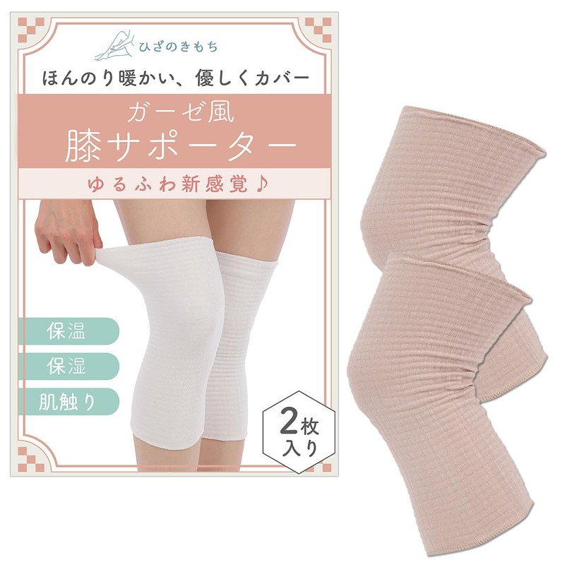 [QQOLi] 【ゆるふわ感覚】 膝ウォーマー ひざ 保温 保湿 ガーゼ風 柔らかサポーター 薄い 締め付けなし 冷え対策 介護 男女兼用 (ベージュ)