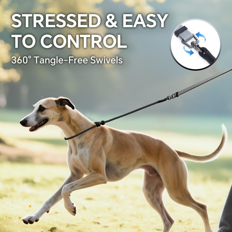QQPETS Adjustable Slip Lead Dog Leash, Hands Free Waist Leash for Dog Walking, Reflective Training Lead with 360° Swivel Anti-Tangle, 4-7 ft Length for All Breeds