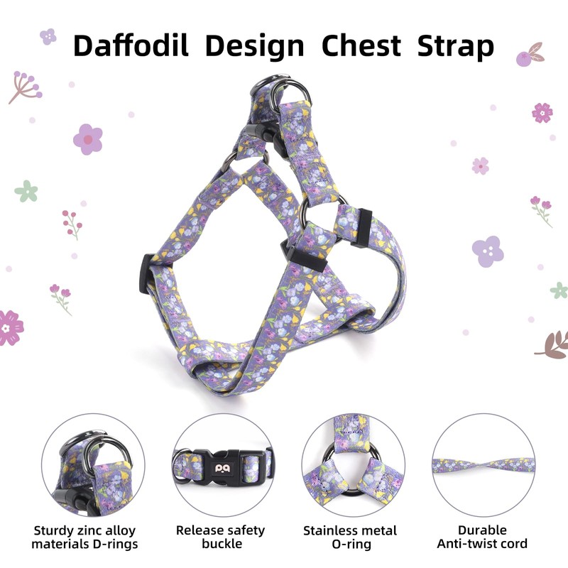 - Matching Floral / Cute Pattern: 3 pieces basic collar harness and leash set, made of high quality polyester with high density webbing to add durability. Soft handle, cute and vibrant designs. perfect for female/male pets. customized for your pet using the slide adjusters at the chest and neck.