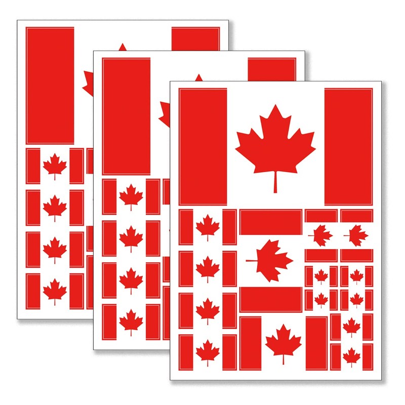 - ENOUGH TO USE and VARIOUS SIZE: Set of 3 Canada decals per pack. 15 pcs each decals, 45 pcs in total, enough for you to use. 11.7x 8.3 inch/29.7 x 21 cm in flag size. A variety of sizes for a wider application.