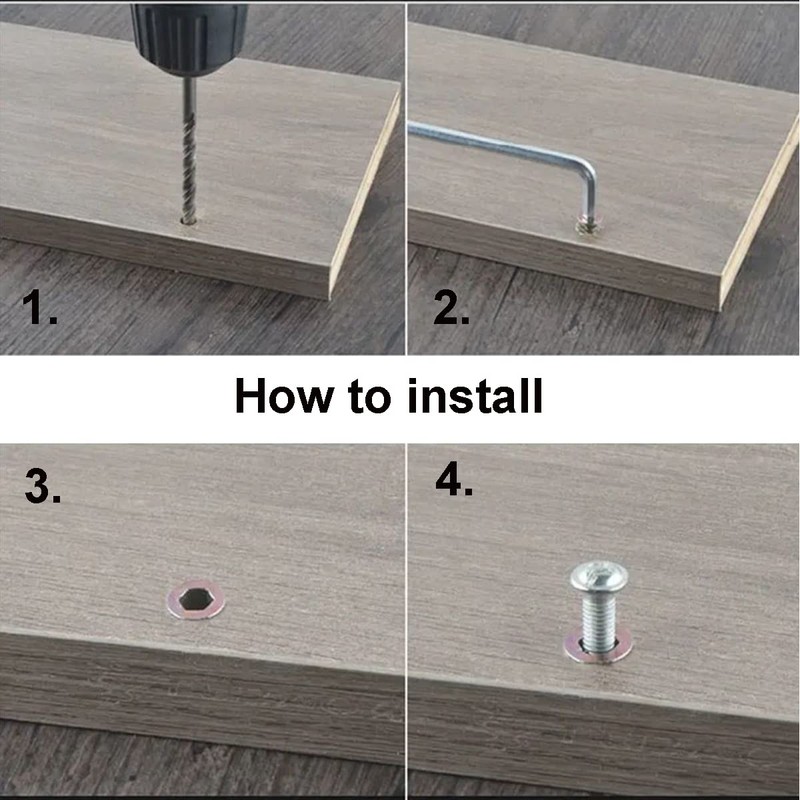1. Drill holes with a power drill or other tool. (Tip: If the furniture wood is with high-hardness, please enlarge the hole)