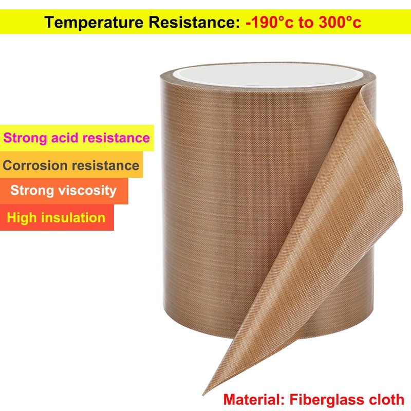 - Material The high temperature tape is made of high quality Teflon fiberglass fabric, abrasion resistant, pressure resistant, corrosion resistant, high temperature resistant, low friction, good insulation and a smooth non-stick surface.