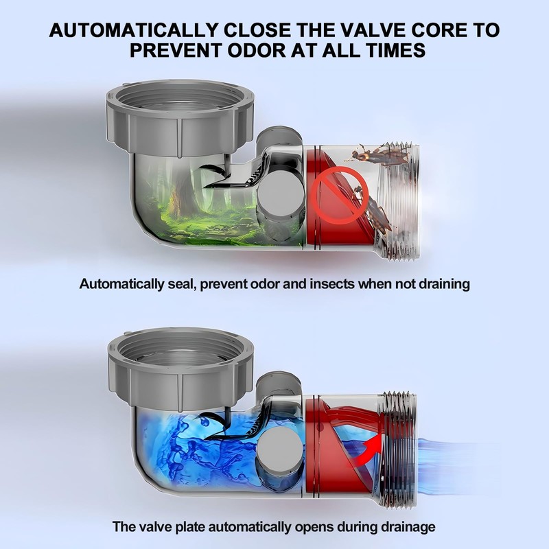 - NEW DESIGN: Our drain fittings purchase thickened PP material made and steel ball, translucent grey visible with auto close one way check valve design, anti-clogging, anti-odour.