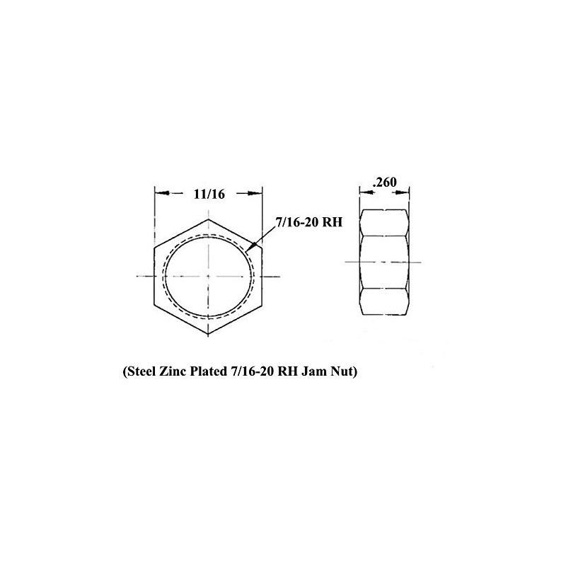 - Jam Nut Specs: Thread: 7/16-20, Width: 11/16, Height: 0.260