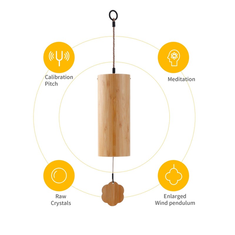- Bamboo Wind Chimes with chord suitable for sound healing, meditation and calming emotions. From grinding and finishing, each of bamboo wind chimes is hand-finished by craftsmen. It is a great choice for home or outside as a special gift.