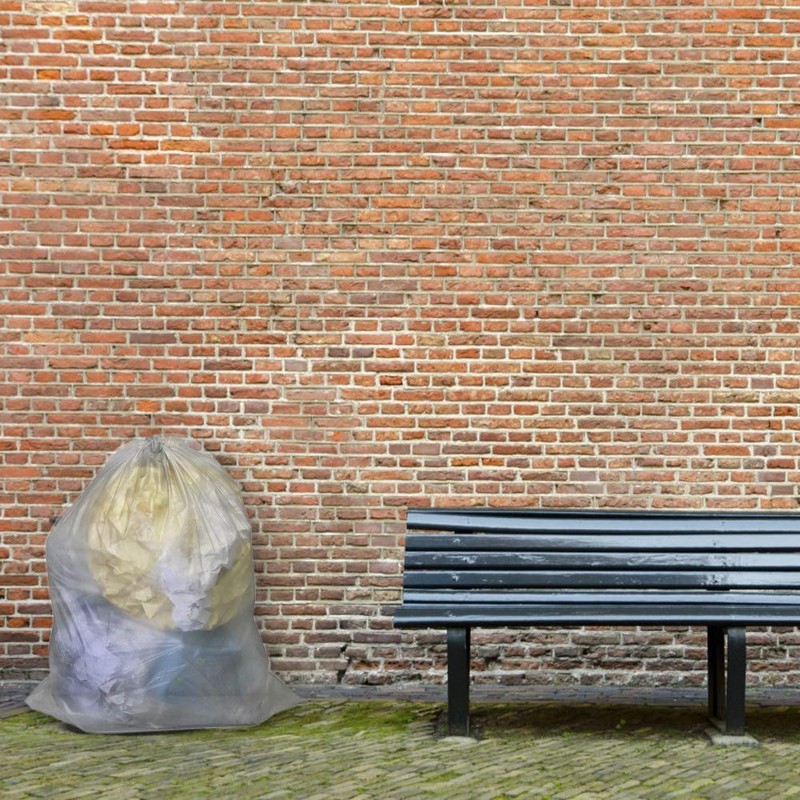 - 100 count 18 gallon kitchen garbage bag, transparent grey