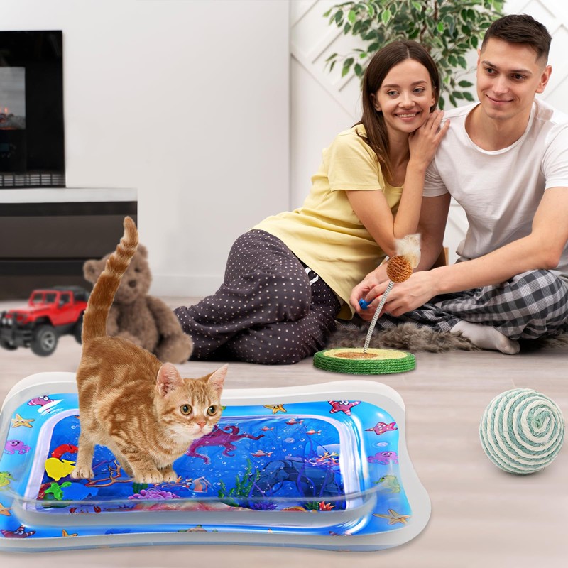 - Comfort & Cooling: The inflated outer ring adds stability, while the floating fish toys are securely attached for endless entertainment. Whether at home, outdoors, or on the go, this water mat for cats ensures entertainment and comfort anytime, anywhere .