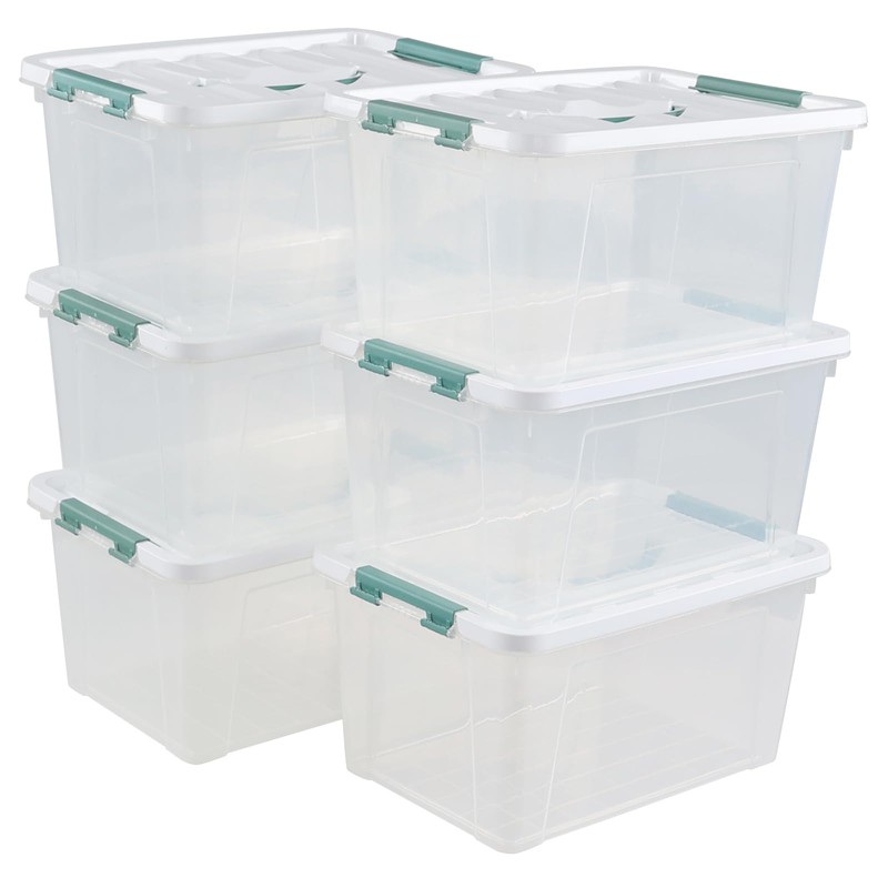 Qskely 6-Pack Clear Latch Storage Box, 14 L Plastic Storage Bin
