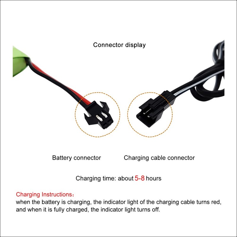 Qsmily® 6V Battery Pack, 1000mAh Ni-Cd AA Rechargeable Battery Pack with SM Connector and Charge Cable, Suitable for Solar Outdoor Light Security Light Amphibious Stunt RC Car