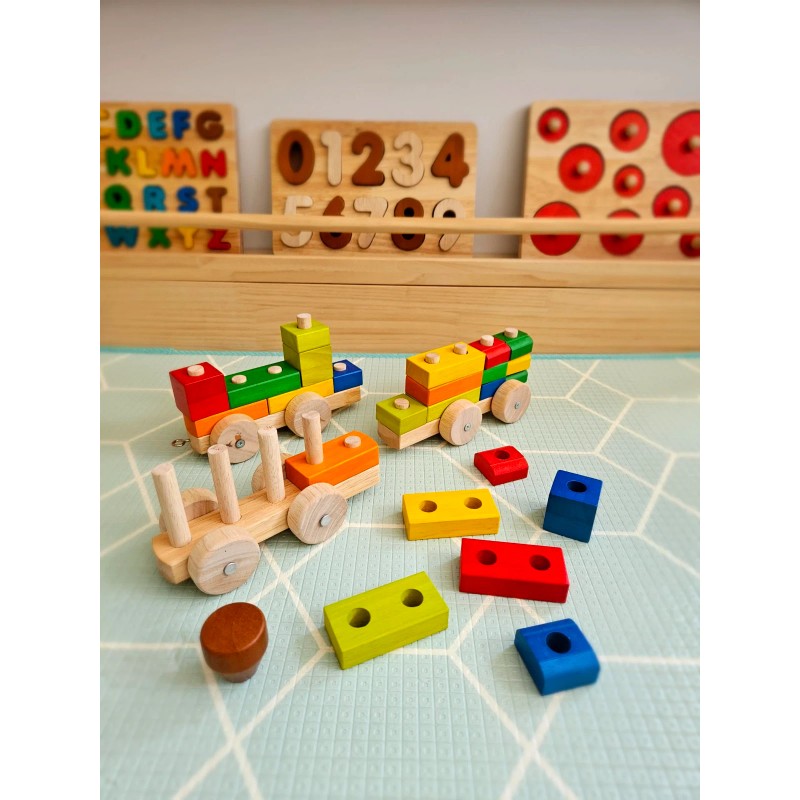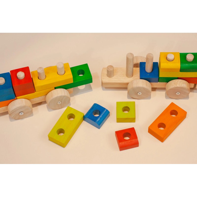 All Aboard the Fun Express with Our Wooden Stack and Pull Train Set!