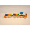 The trains can be connected to form a long, colourful convoy, but the fun doesn’t stop there! Children can stack and arrange the wooden blocks on each train carriage, creating unique designs every time they play. As they experiment with stacking the blocks, they enhance their hand-eye coordination and fine motor skills. Additionally, the bright colours of the blocks introduce colour recognition, helping little ones learn to identify and name different shades.