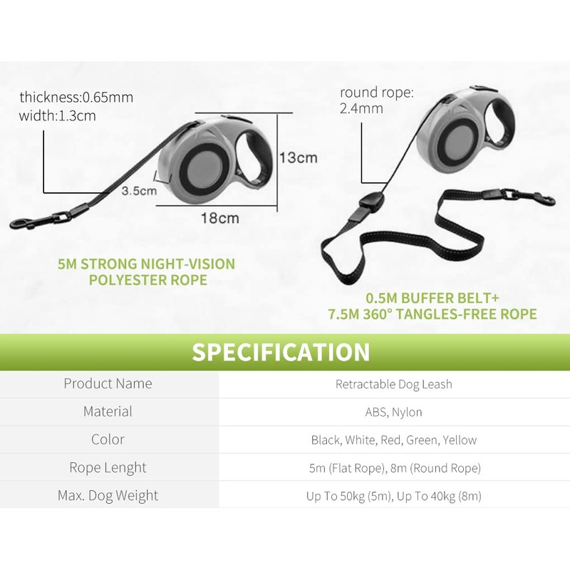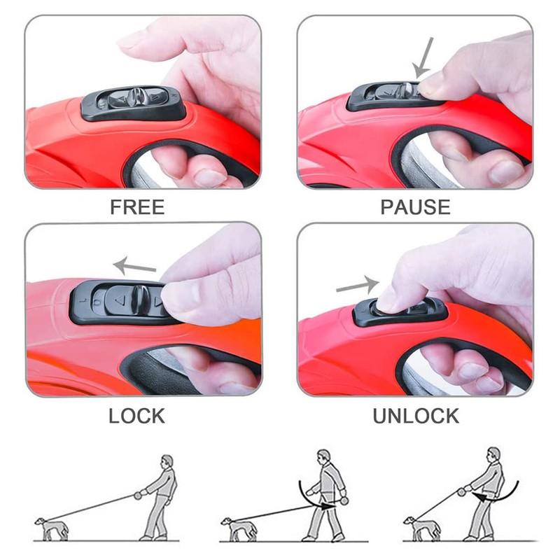 • Reflective & Tangle-Free Leash - The black leash tape is embedded with white reflective materials. Highly reflective cord leash increase security & visibility for dogs and their owners early in the morning or late at night. 360ー Tangle-Free design make the retraction more easy and smoothly.