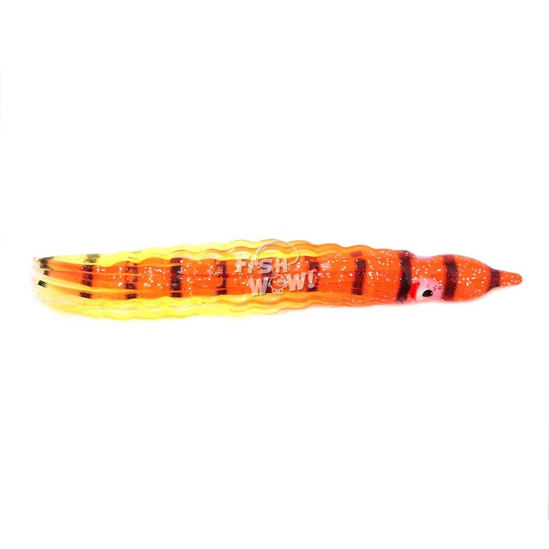 Qty 10 Fish WOW!® Orange Tiger 5" Squid Skirts 13cm Crinkle Hoochies Wavy Octopus Skirts Fishing Soft Trolling Lures Orange Yellow with black stripes