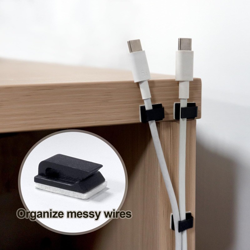 - These self-adhesive cable clamps are designed with a self-adhesive base, which can be firmly fixed on smooth surfaces, great for keeping your home tidy and comfortable.