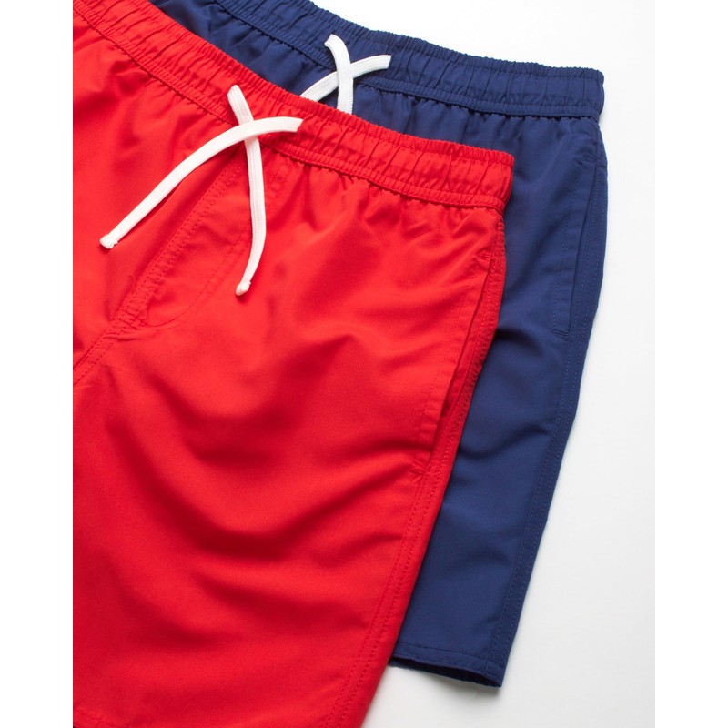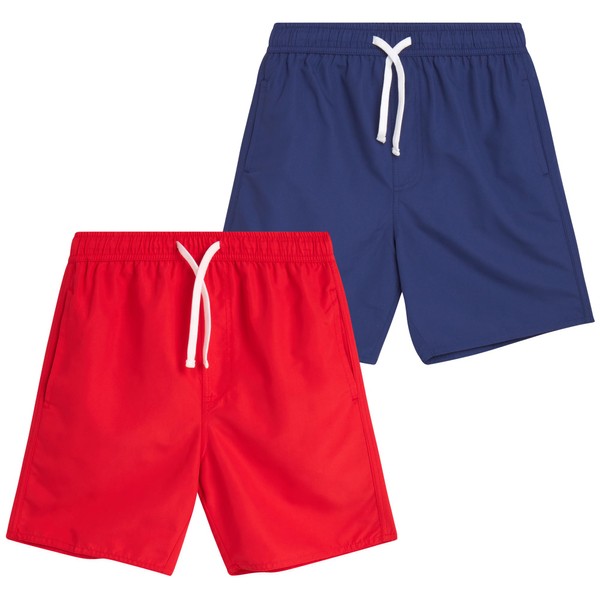 Quad Seven Boys Swim Trunks - 2 Pack Basic Quick Dry Boys Board Shorts Bathing Suit Kids Swimwear with Pockets (Sizes: 8-18), Size 16-18, Navy/Red