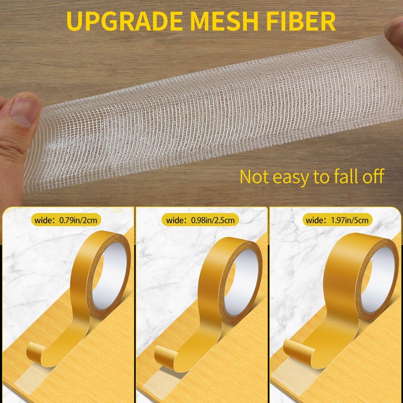 - SPECIAL DESIGN: double sided mesh tape that can stick well to smooth and rough surfaces, This carpet tape, unlike standard tapes, is designed to be thin yet durable, ensuring safety and preventing breakage.