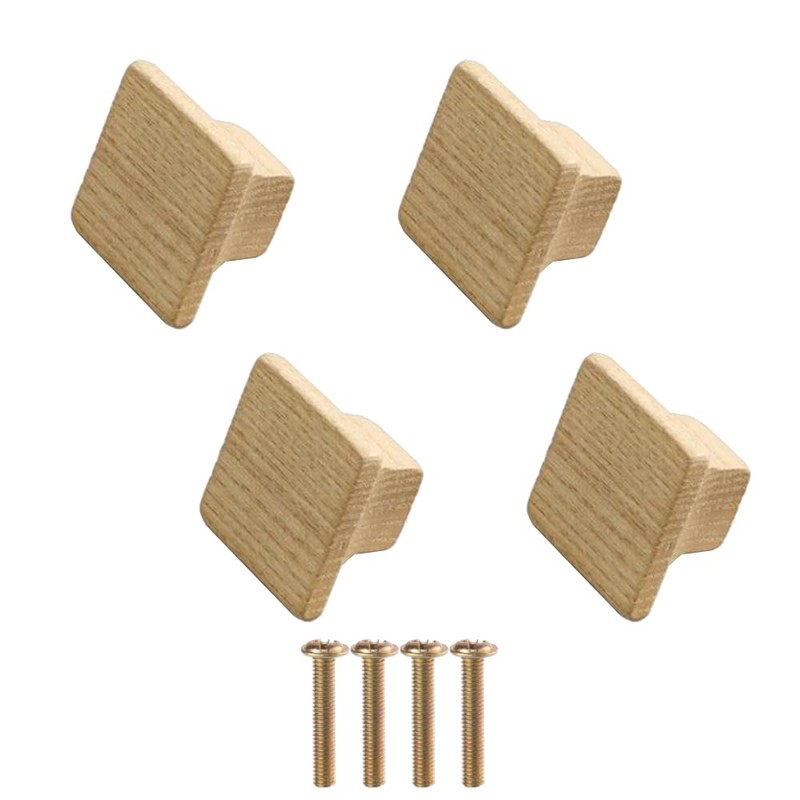 Quadratisch Holzknopf Schubladenknöpfe, Möbelknöpfe aus Natur Eschenholz Möbelgriffe mit Schrauben (4er Set)